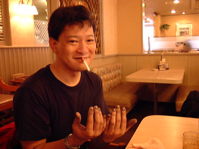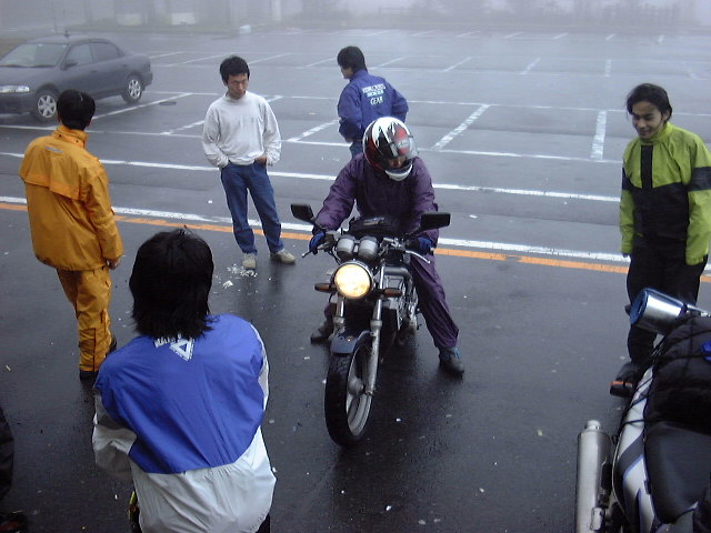 さて、飯でも食おうと向かいのファミレスに行くが、 その前に野島さんのKSR-IIに試乗。面白いっす。 ブレーキ良く効くっす。ああいうバイクは投げ用にいいかも。