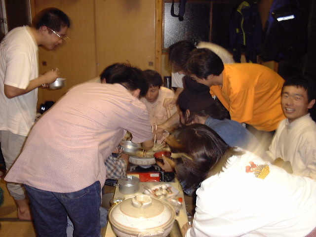 鍋が空くと次の材料を入れ、という風にどんどん作っては食べを