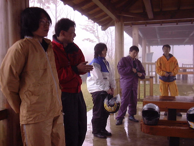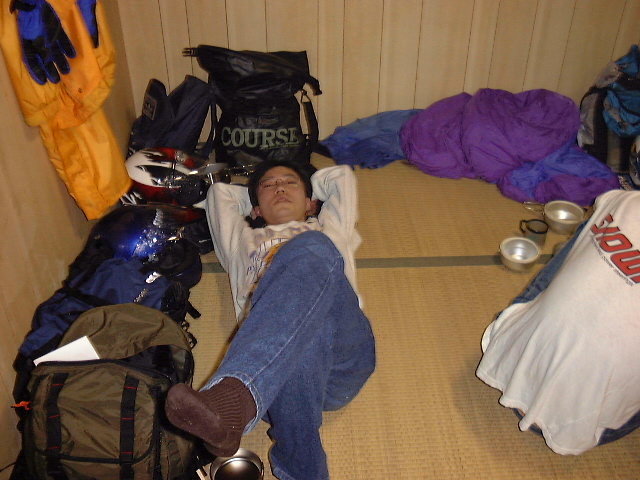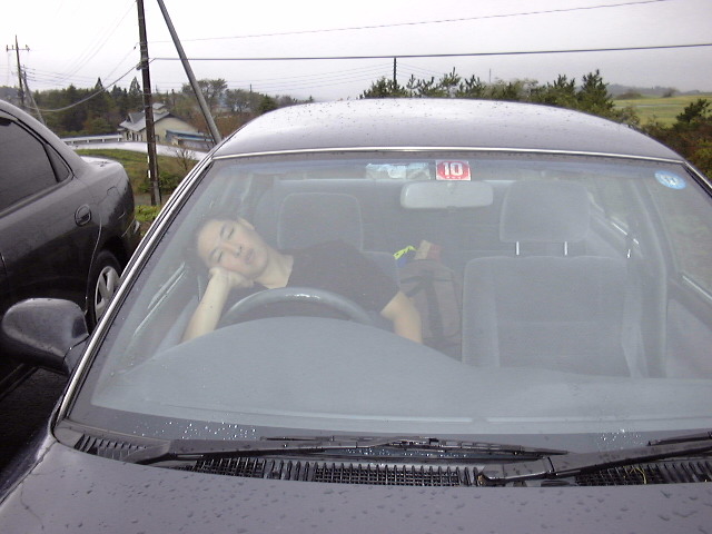 カッパを着ている間、疲れたのか寝ている伊東氏。
