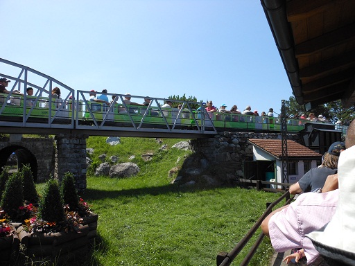 といってもピンとこないのでしょうが、人が跨って乗れるサイズの機関車が小奇 麗な庭園を走り回る。そんなに広くないのですが、路線一回りがかなり長いので 結構満足できます大人でも。