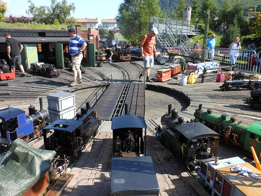 今日は特別な日らしく、多分ですが愛好会?の人々が自分の自慢の機関車を持ち 込んで見せびらかしたり走らせたりもする定例祭りみたいのと思われました。