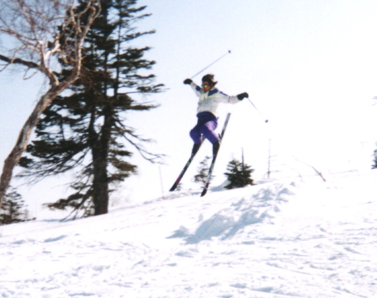 おれさまと借り物のミニスキーだ。ミニスキーを履くとうまく見える。いやまじ で。すいすい滑べれるので死ぬ程うまく見える。アルペンに戻すと「おれってこ んな下手だったのかなあ」と思う事請け合い。